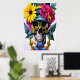 Poster Crânio sorridente, óculos de ouro, chapéu de flor