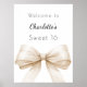 Um fundo branco decorado com um arco grande, colorido bege. Personalize e adicione um nome.
