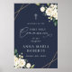 Add a personal touch to your first holy communion celebration with these stylish and memorable party items! Design features white watercolor flowers, greenery and gold frame on navy blue background.
