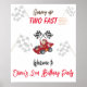 Cartaz de festa de 2º aniversário Crescendo dois rápido é um design fofo com carro de corrida para meninos.