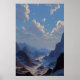 Poster Crescent Moon Over Misty Mountain Valley