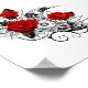 Contorno, lua da crista mecânica com engrenagens, decorada com rosas vermelhas com caules e folhas pretas em fundo branco. Steampunk
