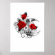 Contorno, lua da crista mecânica com engrenagens, decorada com rosas vermelhas com caules e folhas pretas em fundo branco. Steampunk