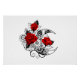 Contorno, lua da crista mecânica com engrenagens, decorada com rosas vermelhas com caules e folhas pretas em fundo branco. Steampunk