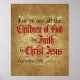 Design apresenta a Bíblia Verse dos Galatianos 3:26, pois vocês são todos os filhos de Deus por fé em Jesus Cristo. Na moda e grunge vintage Christian design com fundo escuro lavado e letras velhas e vermelhas em inglês no primeiro plano. Este design está disponível como uma coleção completa de presentes!