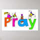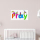 Uma bela ilustração branca de um grupo de crianças pequenas escalando sobre a palavra PRAY. Imagem disponível em vários presentes e produtos.