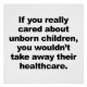 Se você realmente se importasse com crianças ainda não nascidas, você não tiraria o tratamento deles. Sinal de protesto ou poster.