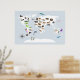 Uma bela ilustração de um mapa mundial com locais de animais nativos ao redor do mundo. Um design ideal para quem ama ilustrações educativas, geografia, animais e mapas etc. Um design perfeito para a decoração infantil, a decoração de quartos para crianças, as ideias de presentes para crianças, os temas de festa de aniversário para crianças, etc.