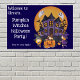 Bem-vindos às suas abóboras, bruxas, e fantasmas gigantes com um sinal alegre que começa a magia do Halloween! Apresentando bruxas de abóbora divertidas, este poster personalizado define a cena para guloseimas, e apenas a dica certa do malfeitor do Halloween. Um olhar, e eles saberão que uma noite de diversão de abóbora está pronta para começar!