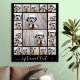Use até 18 fotos quadradas e 2 paisagens/horizontais para criar um presente exclusivo e pessoal. Para obter melhores resultados, recorte suas fotos em quadrados antes de carregar. Este esquema de tendência com um lugar para texto extra ou um monograma inclui linhas limpas e uma grade moderna. Se precisar ajustar as fotos, clique na ferramenta personalizar para fazer alterações.