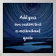 Adicione seu próprio texto - uma citação, saudação, poema, mensagem ou letra, talvez! Você pode adicionar as palavras que quiser a esta poster com um céu estrelado refletido em um lago. Ponha a vida em perspectiva com alguns conselhos curtos e sensuais! Palavras sábias e bonitas podem levar-nos à mentalidade certa para enfrentar quaisquer obstáculos que se avizinham. Citações inspiradoras podem ajudá-lo a reformular pensamentos negativos durante tempos difíceis e mudar sua atitude para que você se sinta revigorado e motivado. Quer você esteja querendo alcançar sucesso no trabalho, em casa, ou na vida em geral, estabelecer as intenções certas pode ajudá-lo a permanecer positivo e otimista durante os desafios que o destino pode lançar seu caminho. Encorajar citações para a vida e o sucesso irá ressoar e ajudá-lo a atingir seus objetivos. Não importa o que você esteja sentindo ou experimentando, aqui está esperando que qualquer pequena citação inspiradora que você adicione possa ajudá-lo a chegar aonde você quer ir!
