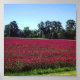 Um belo dia ensolarado em maio de 2018. O campo de trevo da Crimson está no cheio com cor vibrante! Em um campo perto de Salem, Oregon.
