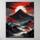 Uma mistura hipnotizante de arte japonesa tradicional e design moderna, esta trabalho de arte cativante mostra o icônico Monte Fuji banhado no brilho quente de um pôr do sol feroz. O uso ousado da cor e da iluminação dramática cria uma sensação de admiração e admiração, convidando os espectadores a mergulharem na beleza desta paisagem eterno.