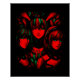 Three cybernetic young women with glowing green eyes emerge from shadow in a striking red-and-black futuristic portrait of unity and rebellion.