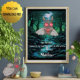 Um lindo retro Mothman voa através da floresta azul-esverdeada. O luar mostra seu reflexo em um pequeno riacho embaixo dele. Ele é uma criatura noturna guiada pela luz da lua e das estrelas. O ditado motivacional nos lembra de nos focarmos no lado positivo enquanto navegamos pela escuridão. Este é um presente de aniversário legal ou qualquer presente que possa ser facilmente personalizado. Também está disponível para download.