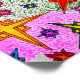 Desenho de abstrato usando formas de flocos de cristal com cores brilhantes na frente. Nos pontos de fundo divididos por várias cores.