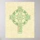 O estilo celta decorou uma cruz alta com nimbus / anel de shamrocks representando a esfera celestial, sobre fundo falso de burlap.