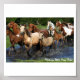 Na costa leste da Virgínia, EUA, a cada ano quase 1,5 milhões de visitantes vêm ao Refúgio Nacional de Selvagem de Chincoteague. Muitos vêm aproveitar a longa praia de areia branca ao longo do oceano Atlântico. O Refúgio é uma grande atração para os observadores de pássaros, e quando o Atlantic Flyway se torna ativo com aves migratórias, gansos do Canadá e gansos de neve há 14.000 acres de dunas, pântanos e florestas marítimas onde eles podem colocar para alimentar e descansar. Mas, ao contrário de outros parques nacionais espalhados pela terra que servem como habitat anual para aves e pequenos animais, o Refúgio Chincoteague, localizado na sua vizinha Ilha Assateague, tem alguns outros bem conhecidos residentes, os famosos pôneis selvagens Chincoteague. A maioria das pessoas vem ver os pôneis todos os anos no final de julho, com até 40.000 coroando a pequena Ilha para a Penning anual de Pony quando os potros são leiloados para arrecadar dinheiro para a companhia de incêndio na Ilha. Os pôneis, cerca de 150 deles, estão divididos em dois rebanhos na ilha de Assateague. Desconhecidas de muitos, são arredondadas três vezes por ano pelos igualmente famosos Cowboys da Água Salgada e recheadas em currais onde foram controlados pelo veterinário e administradas vacinas e medicamentos contra vermes. Você pode ler mais sobre Assateague e os pôneis no nosso site, www.wildponytales.info. Os pôneis são propriedade da Chincoteague Volunteer Fire Company. As fotografias que estamos oferecendo para venda foram tiradas em recentes rodadas na natureza por um dos funcionarios estudantes do site. Os pôneis nesta foto estão atravessando um riacho a caminho do grande corredor na Beach Road.