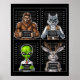Este design de criptozoologia apresenta um conjunto engraçado de criptídeos de um pé-grande, lobisomem, alienígena e jaqueta.