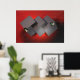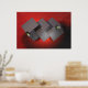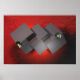 3d abstrato art. Cinzas em fundo vermelho.