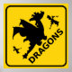 Cuidado com o Sinal de Aviso dos Dragões Poster. Engraçado estrada internacional e sinal de aviso amarelo e preto da estrada avisando da atividade do dragão poster. Este legal cartaz do dragão é totalmente personalizável, adicione seus textos e imagens. Um presente de dragão excelente para o grande fã de dragões!