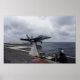 Um viticultor EA-18G ligado aos "Anzóis" do Esquadrão de Ataques Eletrônicos (VAQ) 137 lança da cabina de pilotagem do porta-aviões da classe Nimitz USS Theodore Roosevelt (CVN 71). O USS Theodore Roosevelt está participando de um exercício de unidade de treinamento composto, que testa a capacidade do Grupo de Greve de Portadores Theodore Roosevelt de reagir com eficácia a cenários do mundo real e atuar como uma unidade integrada. (5 de fevereiro de 2015 - Fotografia por Especialista em Comunicações de Massa Anthony N. Hilkowski - Libertada).