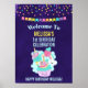 Poster de aniversário com uma ilustração fofinha com um cupcake e sorvete sorrindo de alegria. Um arco-íris e corações rodeiam o desenho. Uma nuvem fofa e fofa também está sorrindo de felicidade. O cupcake e o sorvete têm um trompa de unicórnio em cima. Cheio bonito e adorável de alegria. Confetti colorido e um banner de bunting na parte superior.