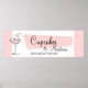 Seu evento será espetacular com este pôster estilo banner. Ilustração de cupcake e martini em estilo de linha retrô