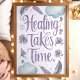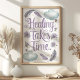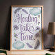 Poster Curar leva tempo Pastel Floral e Pena Arte