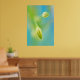 Um grande poster em verde quente e azul para decoração de casa e escritório. O fundo ciano suavemente turvo e o delicado assunto de cor quente tornam-no ideal para relaxar os desenhos do interior. Ilumine-o com sutis lâmpadas brancas difusas.