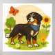 Poster Cute Bernese Mountain Dog with Sunflower & Butterf
