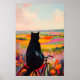 Poster Cute Black Cat Enjoying Nature with Bicycle