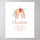 Este adorável e neutro poster de natação de bebês apresenta um arco-íris de terracota bonito e neutro com flores de aquarela de boho em um simples fundo branco. Adicione o nome do seu bebê à moderna escrita de tendências e adicione todas as estatísticas de natalidade do recém-nascido.