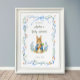 Poster Cute Bunny Boy Floral Blue Bow Baby Shower Welcome