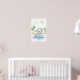 This cheerful baby elephant splashes playfully in a sparkling water puddle on a sunny day. With big, bright blue eyes and a happy smile, this adorable little elephant enjoys the cool water while surrounded by gentle green trees and fluffy white clouds. This sweet and charming illustration brings warmth and happiness to any child's room or nursery.