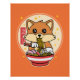 Póster Cute Fox Eating Ramen Kawaii - Presente de Comida