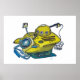 Poster Cute little yellow submarine in blue water