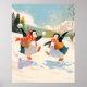 Poster Cute Penguins Playing in Snow Watercolor Nursery