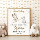 Celebrate your baby's arrival with our charming, gender-neutral baby shower design, featuring a classic white stork flying over a soft, light brown sky, carrying a sweet baby. Perfect for a boy, girl, or surprise shower, this elegant and minimalist design adds a warm and timeless touch to your event. For complementary elements, see our collection of this lovely design.