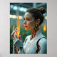 Merging nature with technology, this goddess features green glowing circuits to protect future ecosystems.