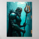 Lord of the ocean equipped with a neon-powered trident and deep-sea tactical gear, blending myth and high-tech.