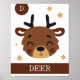 D é de Veado. Esta impressão de arte simples e fofa faz parte de uma coleção. Combine este design com outros pôsteres da coleção para uma galeria de arte para o quarto da sua criança.
