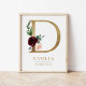 Poster D - Letra Monograma Nome Marsala Floral Nursery