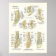 Anatomia da poster do pé. Oito imagens criadas com imagens vintage mostrando anatomia superficial e profunda do pé e tornozelo. As imagens mostram: músculos e bainhas de tendão no dorso do pé esquerdo; artérias e ossos do dorso do pé esquerdo e tornozelo; bainhas de tendão e músculos da região interna do maléolo; e camadas superficiais e profundas das solas do pé direito.