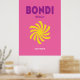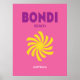 Bondi Beach é um destino popular na Austrália. É conhecida por ser praia e cultura de surfe. Esta imagem mostra um motivo solar em movimento em um solo rosa.