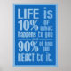 "A vida é 10% do que acontece com você e 90% de como você reage a ela".