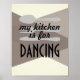 poster da cozinha minha cozinha é para dançar em cinza e branco