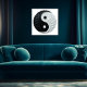 Nosso Poster chinês Yin Yang Energy Duality é um símbolo gráfico de origem chinesa que tem a forma de um círculo dividido uniformemente em duas formas simétricas de lágrimas representando yin e yang. Esse símbolo representa as duas forças complementares que compõem todos os aspectos e fenômenos da vida. Yin é um símbolo de terra, feminilidade, escuridão, passividade e absorção. Ela está presente em números pares, em vales e riachos, e é representada pelo tigre, pela cor laranja e por uma linha quebrada. Yang é concebido como o céu, a maldade, a luz, a atividade e a penetração. Ele está presente em números ímpares, em montanhas, e é representado pelo dragão, o azul colorido e uma linha não quebrada. O símbolo é frequentemente utilizado como técnica de relaxamento ASMR.