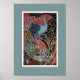Esta impressão apresenta uma reprodução no estilo fresco com escovas secas de um poster francês para uma exposição de arte em 1898, altura do movimento de arte Art Nouveau. Ele retrata um esplêndido Pavão em tons de azul, turquesa em um fundo multicolorido de vermelhos e castanhos mudos.