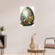 Poster de Páscoa excelente com um ovo grande de Páscoa e animais bonitos como um coelho ou coelho da Páscoa. Magical Fantasy Forest Floral Art com flores e animais adoráveis.